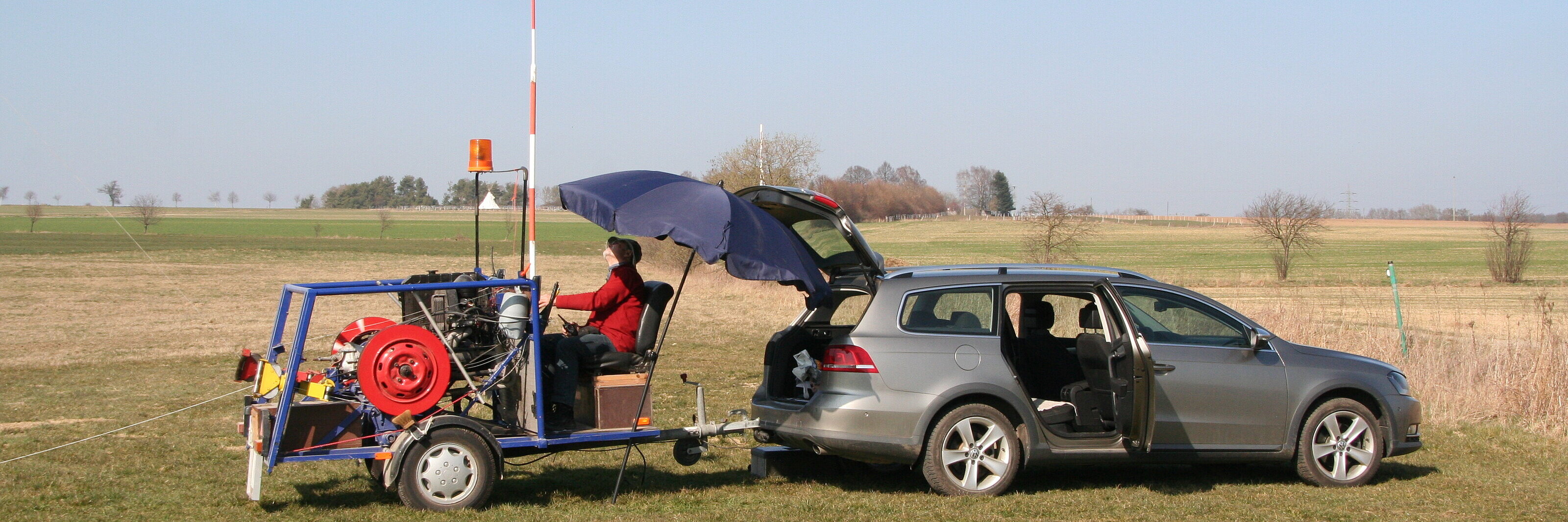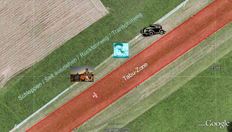 Bei Erreichen der Winde RECHTZEITIG vom Gas gehen und langsam ausrollen, damit die Seilrolle Zeit hat auszulaufen. Sonst droht Seilüberwurf. Rückfahrt vom Start zur Winde direkt nach dem 2ten Seil auf der Schleppstrecke