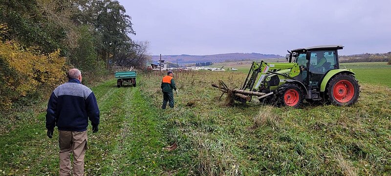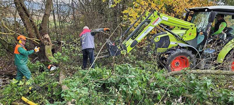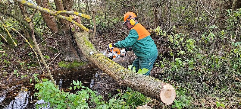 Diesesmal stand das Fällen morscher Bäum an, sowie das Abmontieren alter Greifvogel-Stangen und Bänke.